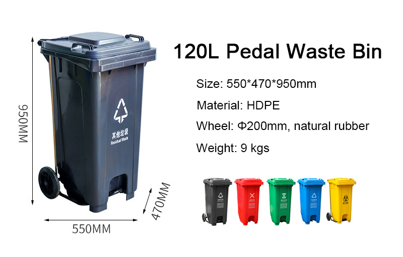 120L/32 Gallon Foot Pedal Wheelie Waste Bin